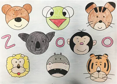 我喜歡動(dòng)物,也喜歡去動(dòng)物園看動(dòng)物,因此我用圓形的元素添畫了各種動(dòng)物:小熊、青蛙、松鼠、考拉、猩猩、獅子、河馬還有老虎,它們都是我很喜歡的動(dòng)物。