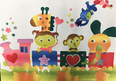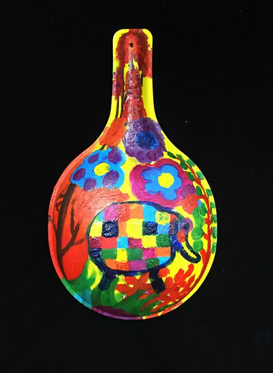在馬勺上用丙烯顏料,給大象安個(gè)五顏六色漂亮的家。