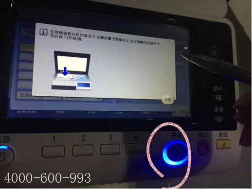 選擇好按鈕之后,不要蓋下蓋板,點(diǎn)擊圖中圈出操作按鈕即可識別紙張尺寸: