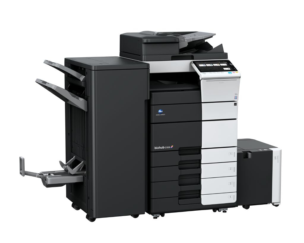 柯尼卡美能達彩色復印機bizhub C558系列產品是彩色多功能復合機領先技術的代表,首次采用的10.1英寸超大液晶觸摸屏,實現了操作體驗的升級,大容量的雙面同步掃描自動輸稿器可以輕松應對高速的彩色掃描,而標配的內部網頁服務器(IWS)技術平臺則能更好地支持第三方解決方案以及日益興起的移動和云技術。