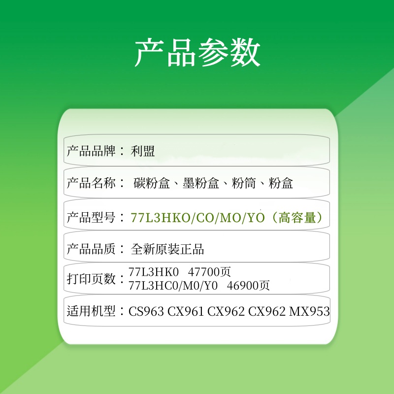 • 利盟原裝碳粉77L3HK/C/M/YO 適用CS963 CX961 CX962 CX962 MX953打印機(jī) 批發(fā)價(jià)
