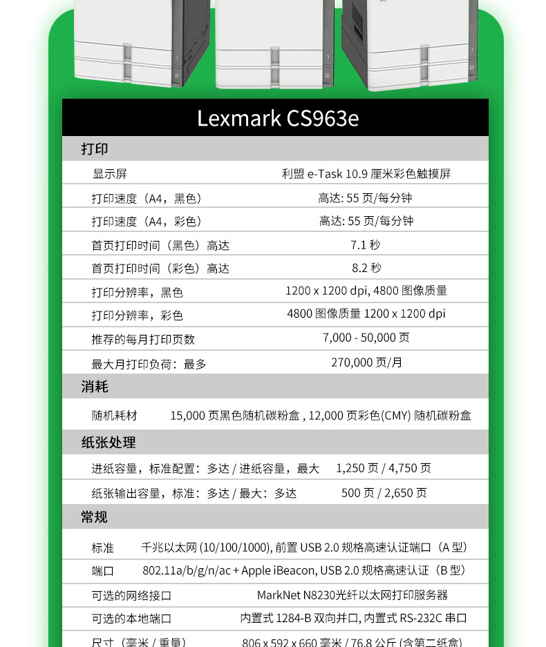 利盟(Lexmark)CS963e彩色激光復(fù)印機(jī)價(jià)格圖片參數(shù) 55頁/分鐘 文檔裝訂打印之選