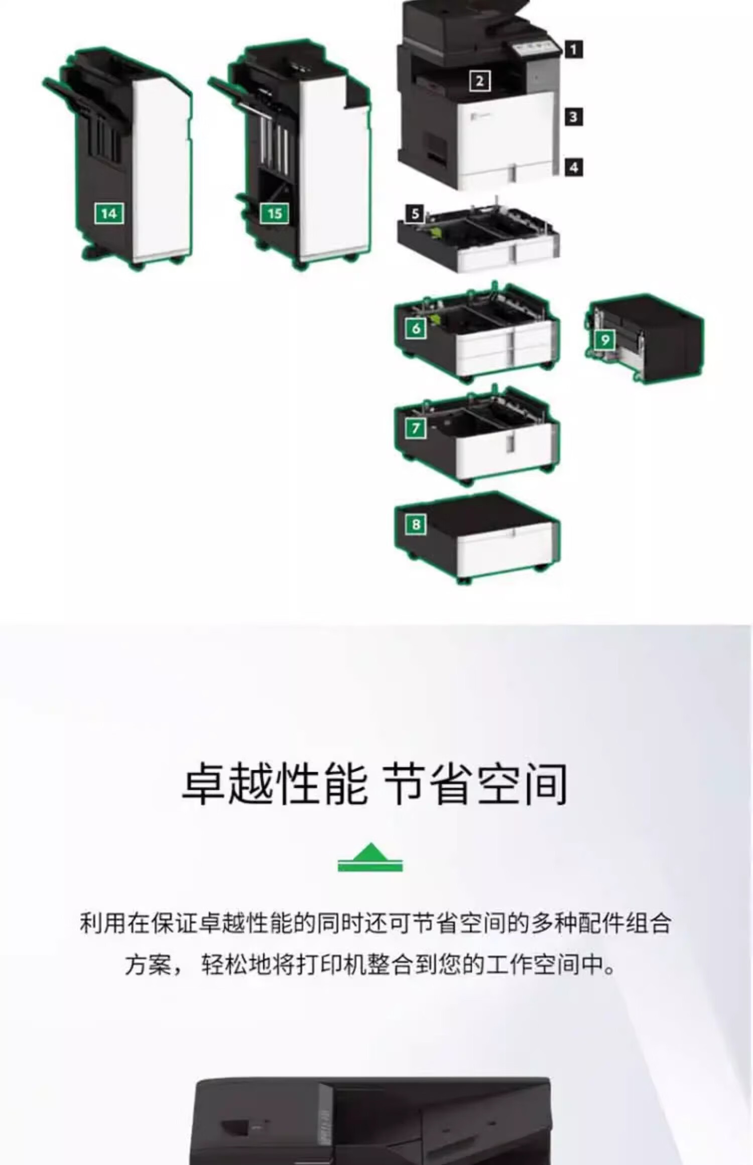 • 利盟(Lexmark)CX961se復(fù)印機(jī) 彩色激光多功能數(shù)碼復(fù)合機(jī)打印機(jī) 35頁/分鐘 輸稿器 雙紙盒參數(shù)圖片